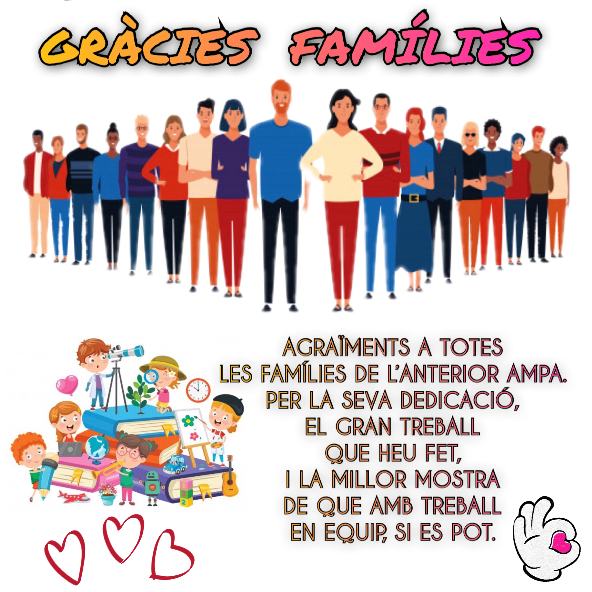 I volem aprofitar des de la nova AFA, per agraïr tot el treball, il.lusió, esforços, dedicació i estima, que han mostrat sempre a les famílies de l’escola i al seu treball.