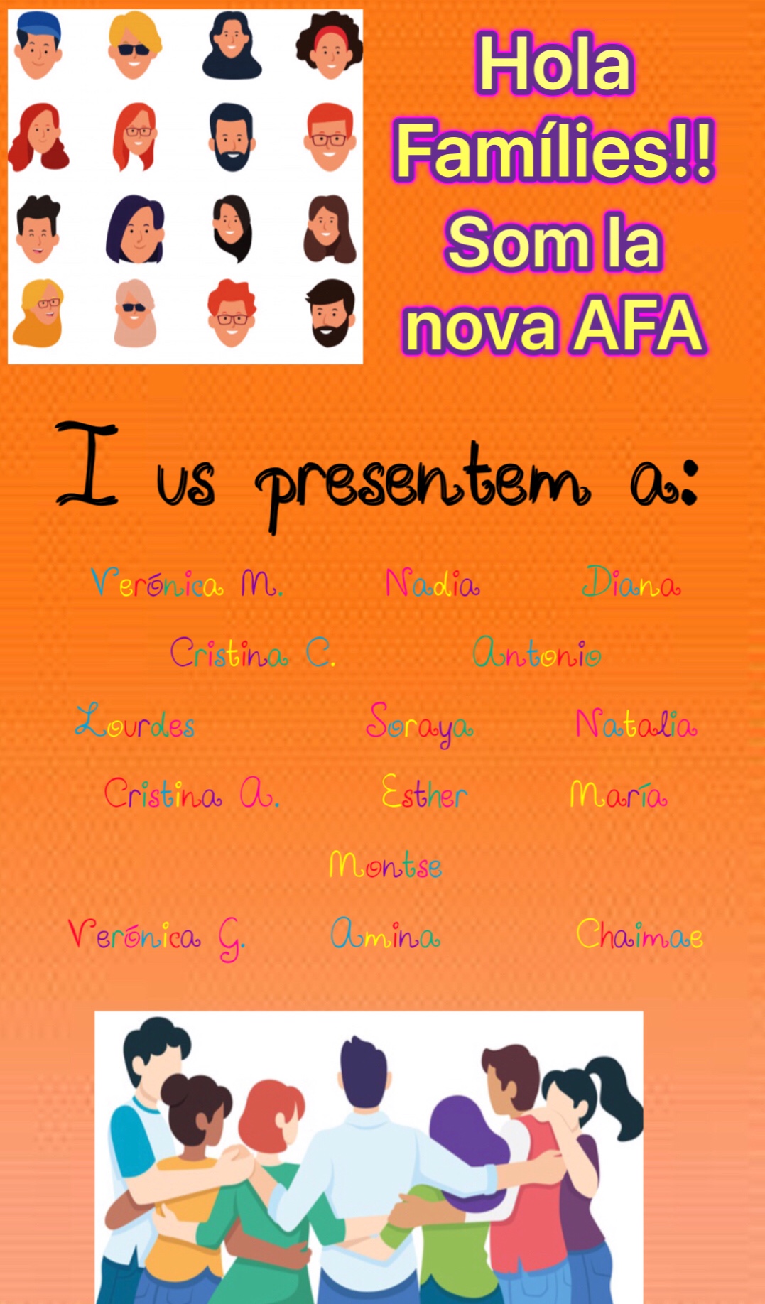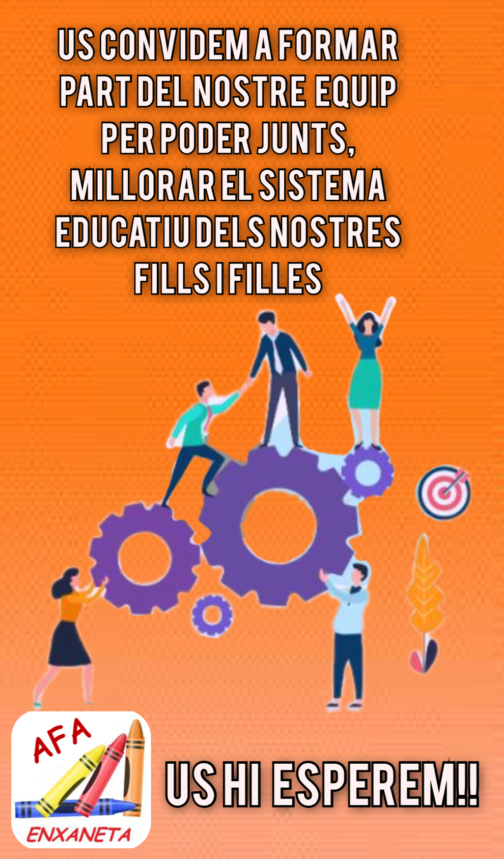 Us convidem també a totes les famílies a entrar a formar part del nostre equip, per poder junts millorar el sistema educatiu dels nostres fills i filles