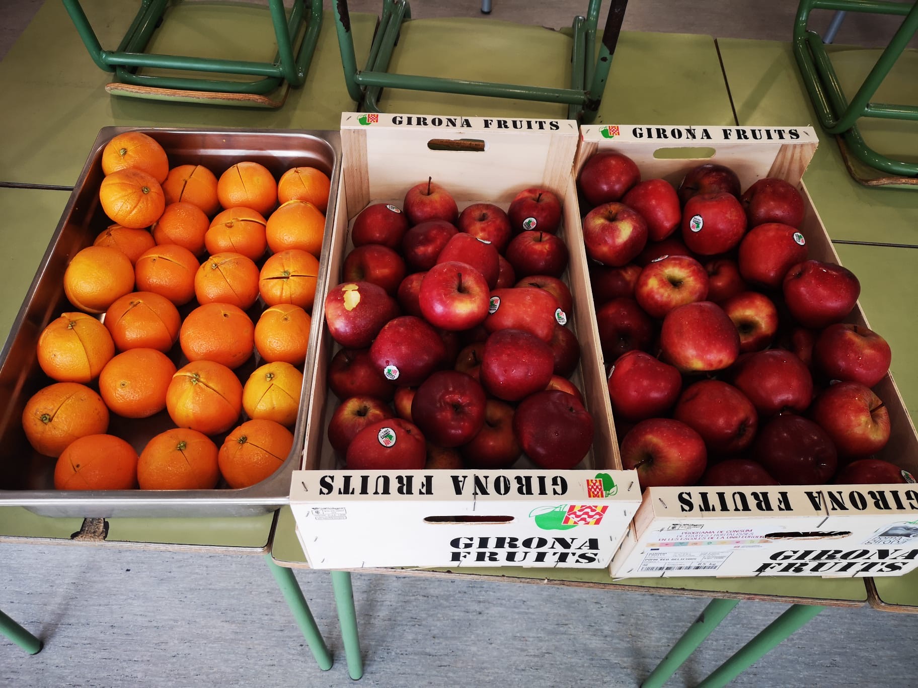 En el Pla de Consum del curs 2019/2020 s’ha previst fer 5 entregues de fruita de temporada (1 cada mes a repartir en dos dies), de gener de 2020 a maig de 2020, per a la totalitat dels alumnes de l’escola.