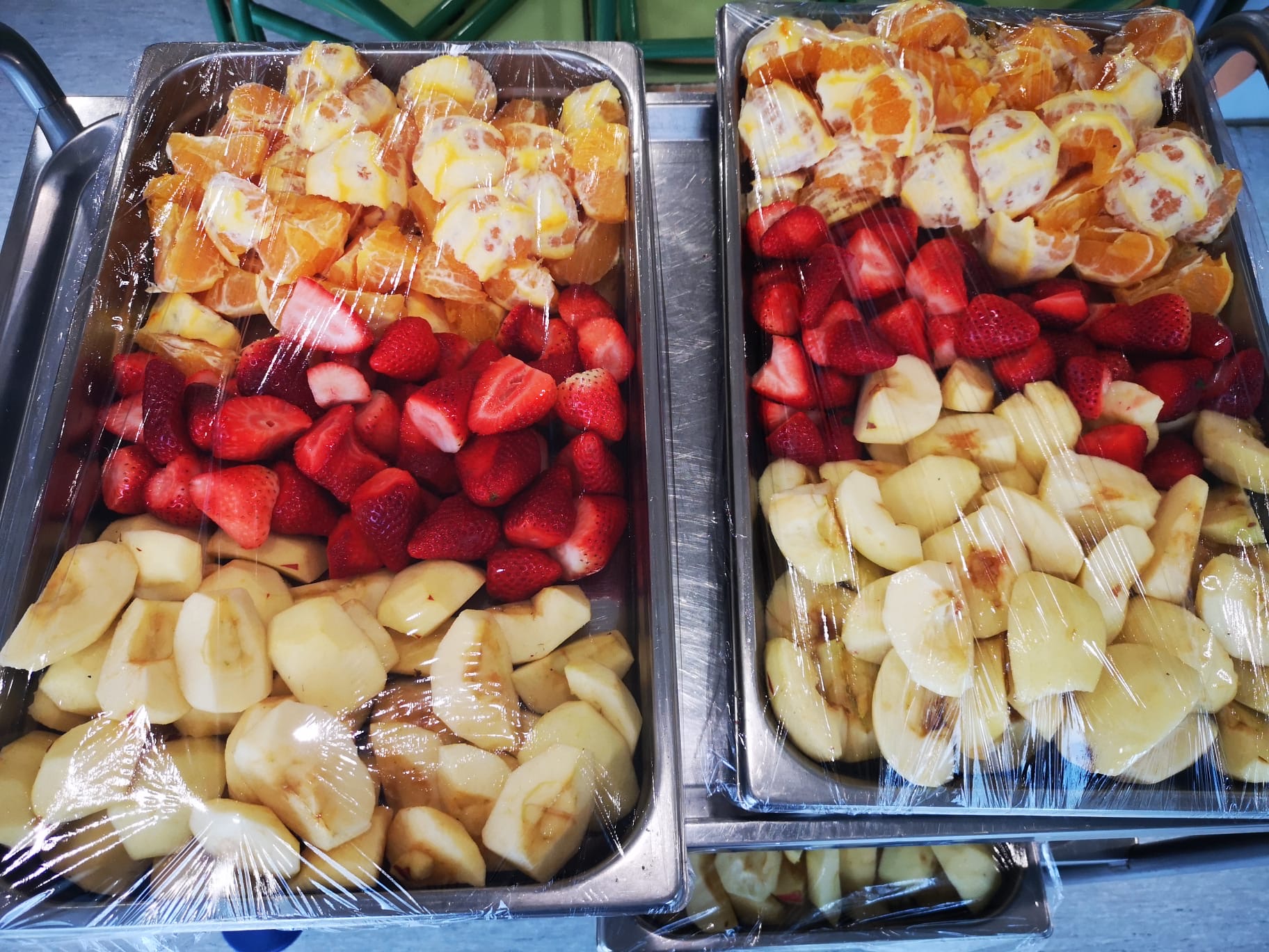 El quart lliurament es va realitzar els passats dies 4 i 6 de març. Una comissió de mares i pares voluntaris/es van anar a l’escola a tallar la fruita i a repartir-la. Va ser tot un èxit.