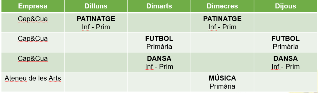 QUADRANT DE TOTES LES ACTIVITATS EXTRAESCOLARS PEL CURS 25/26